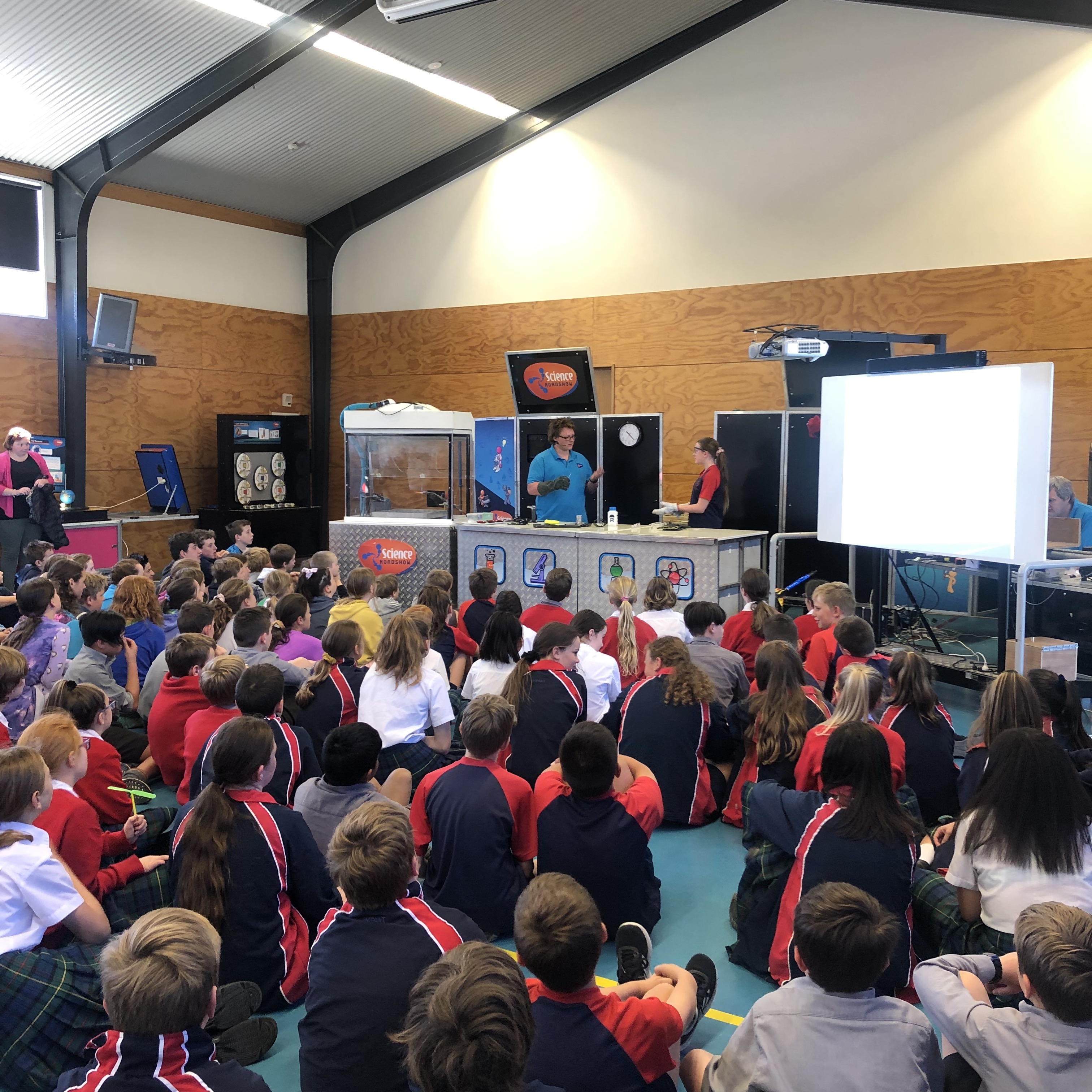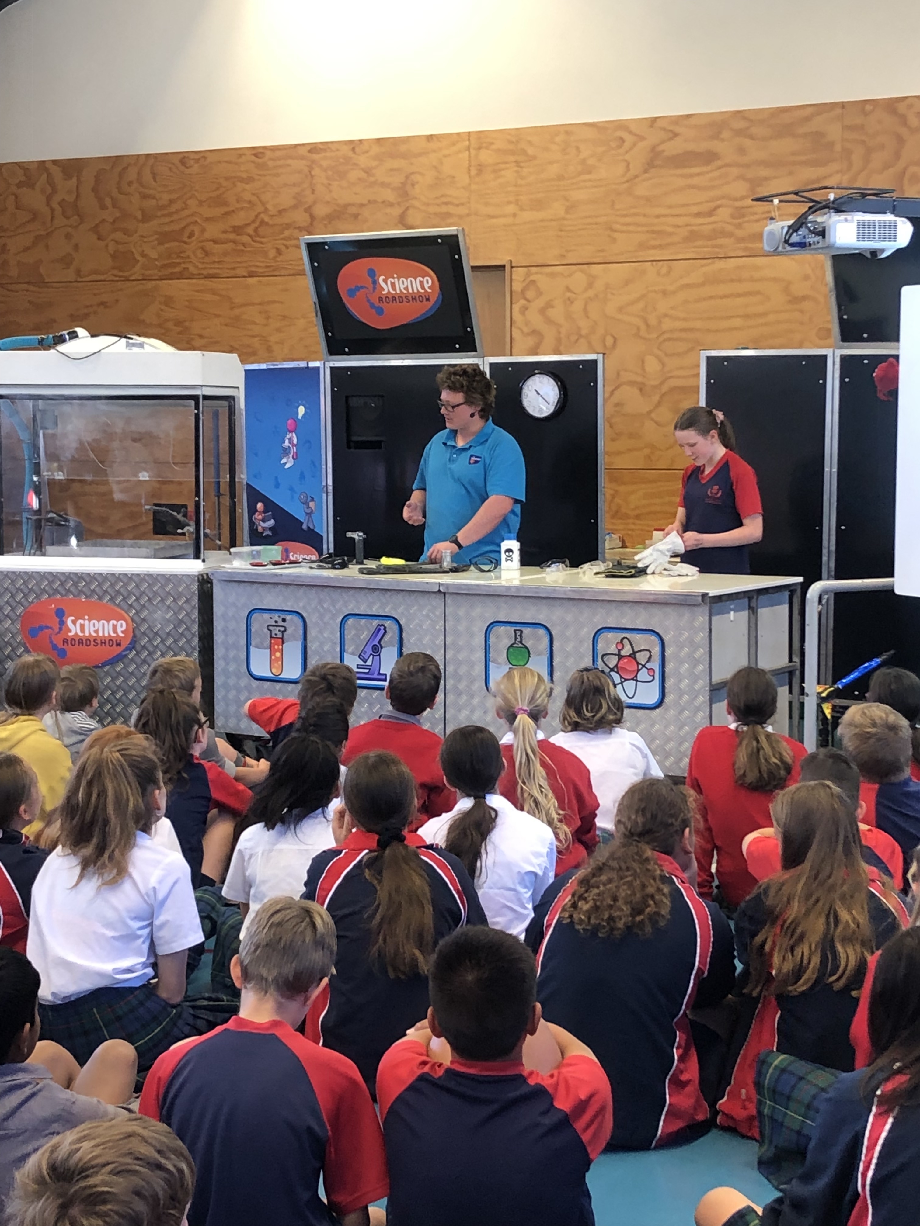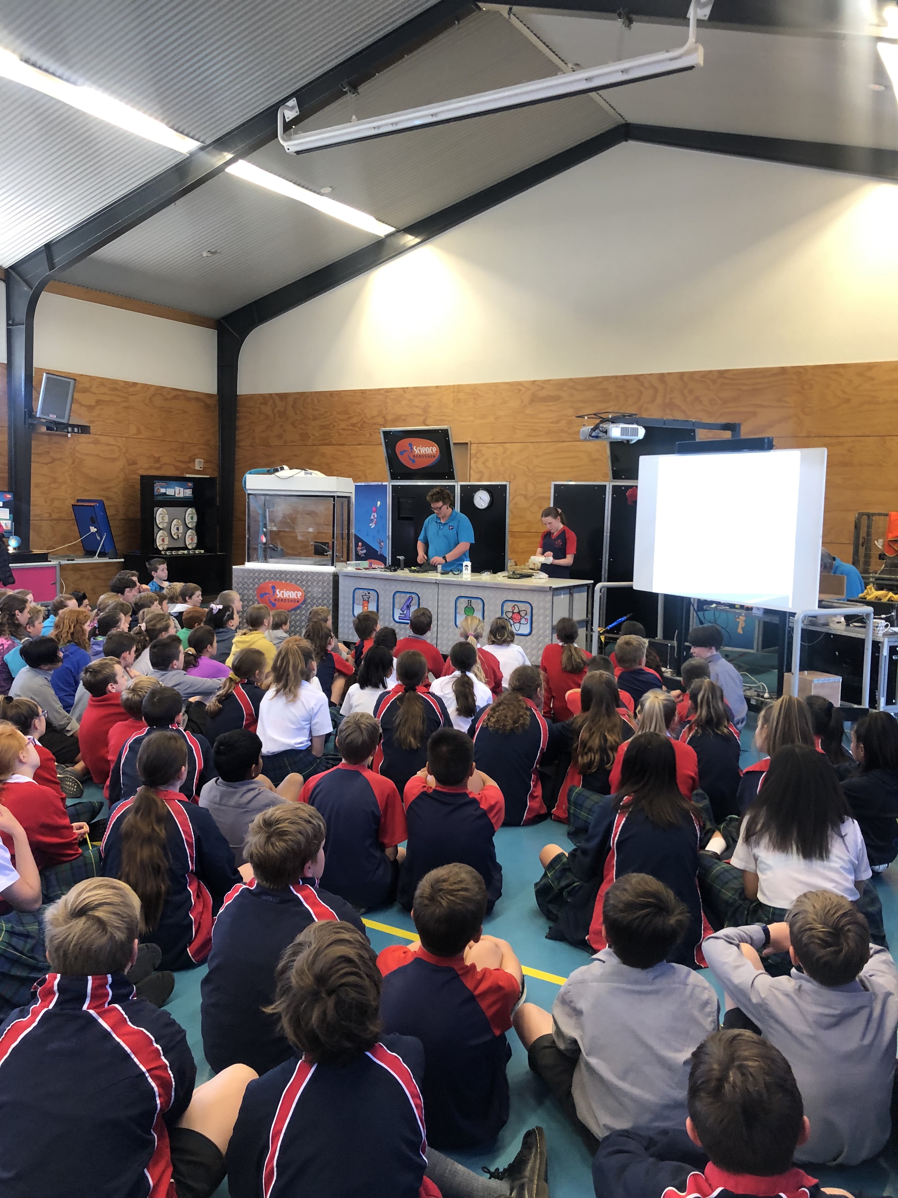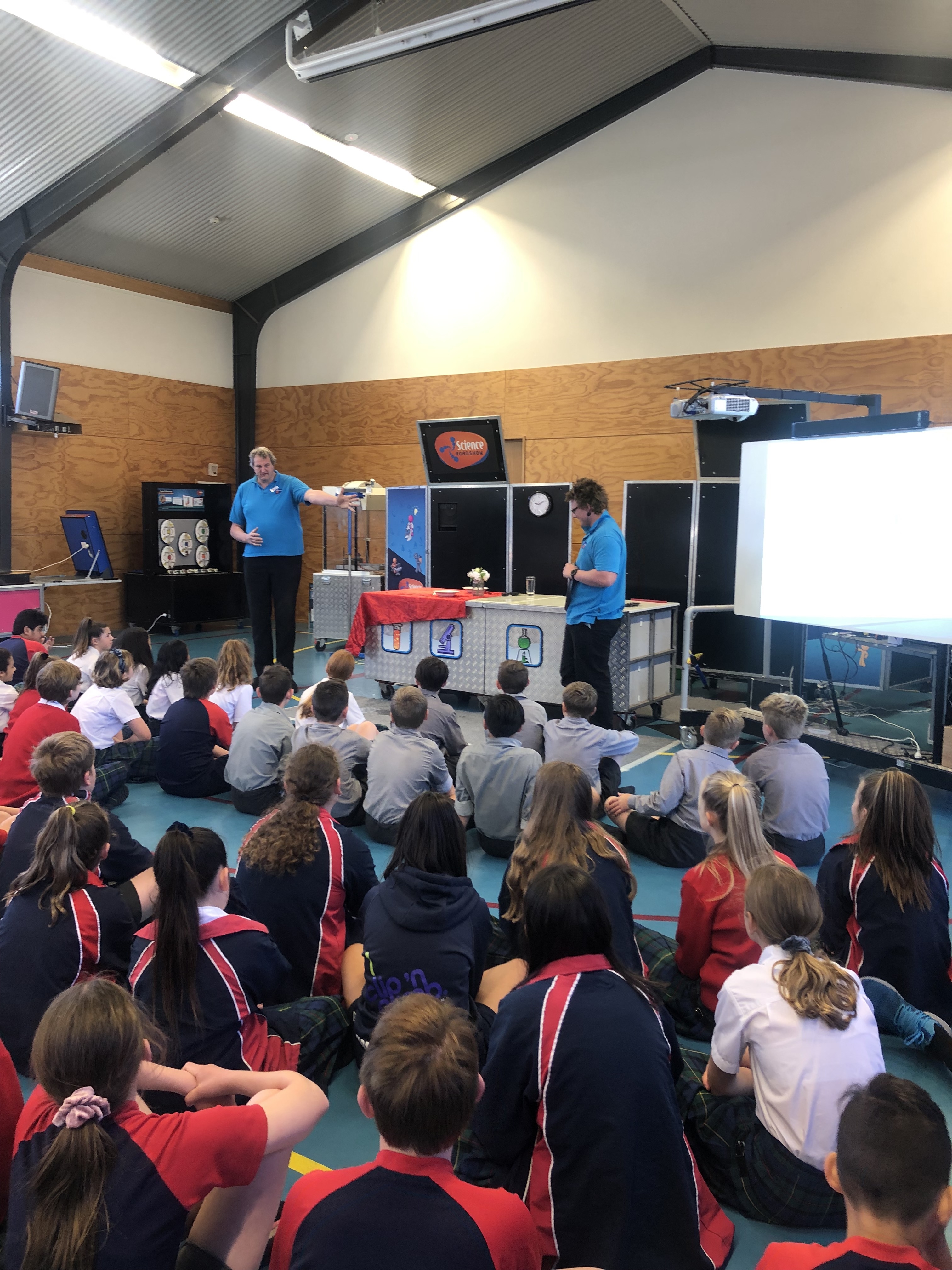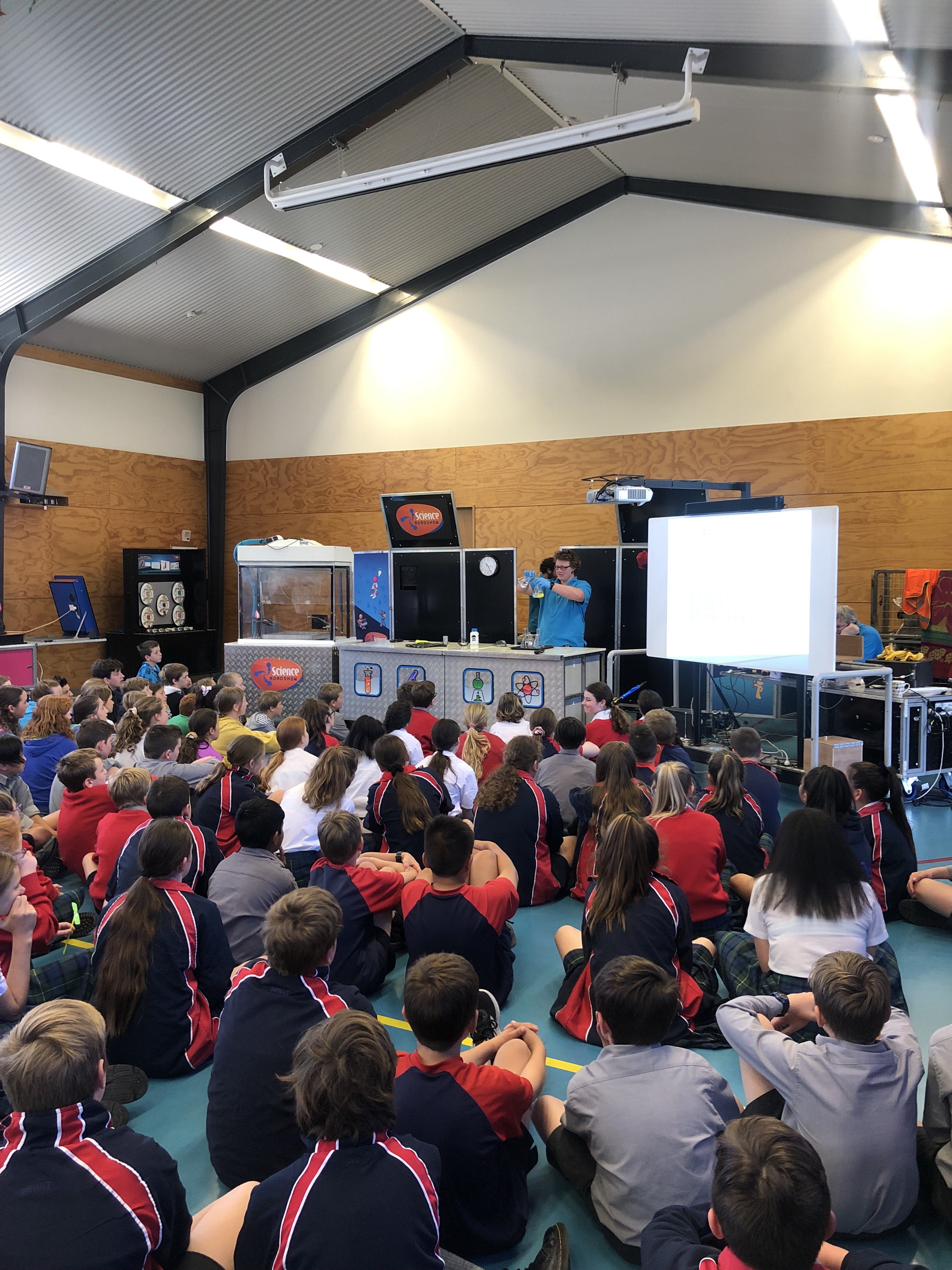 As part of our visit the science roadshow team also presented two shows - the first show was looking at gravity. The second show focused on matter and the elements and how they react. We had about an hour also go around and explore the exhibits - each with an activity and the science concepts behind the activities explained in a hands on exhibit. It is a great one off day to experience new science ideas in a fun and interactive way and something we look forward to hosting each year.