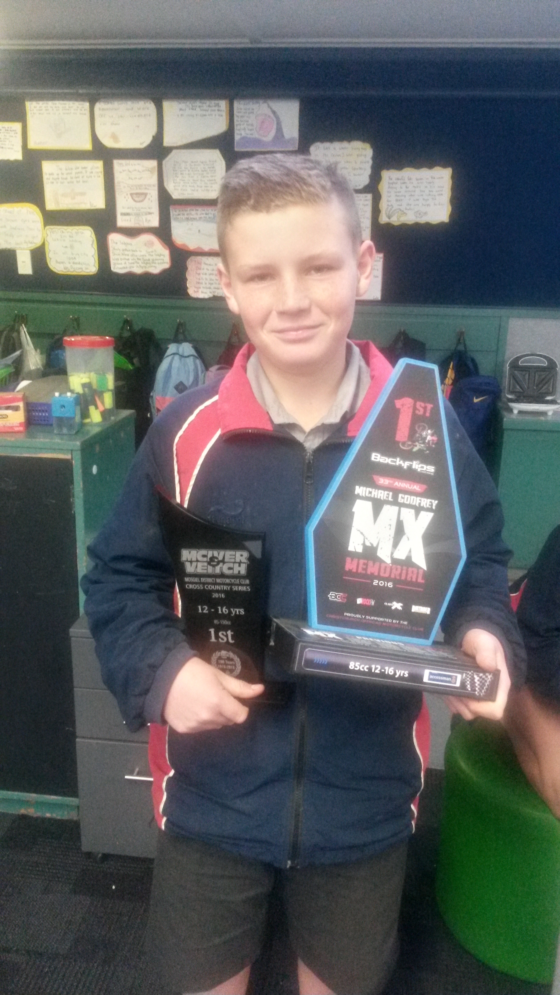 Here are two outstanding examples of our students achieving at a the South Island champ level. Sarah Ford received first in the Under 13 cycling time trial and road race, and Regan Turner received a new South Island title and a regional trophy for Motorcross. Well done to both champs!!!!