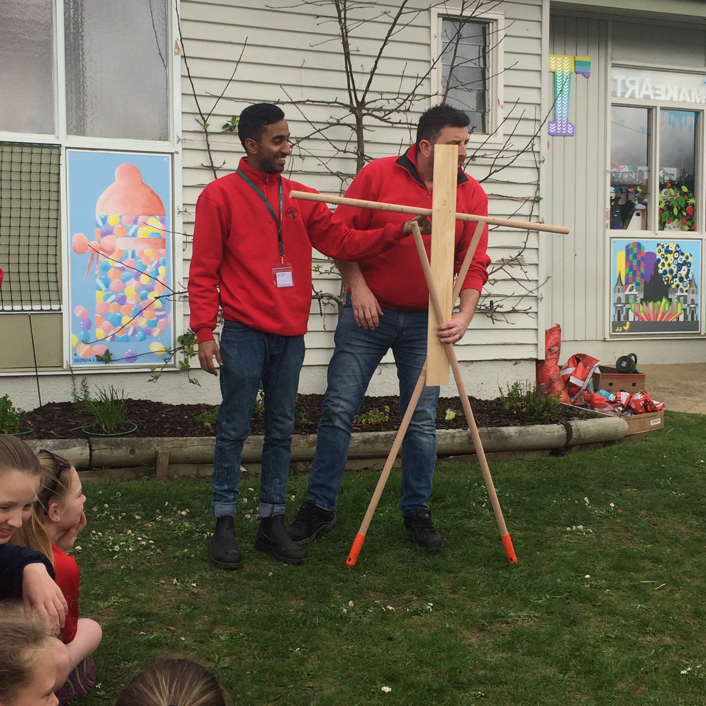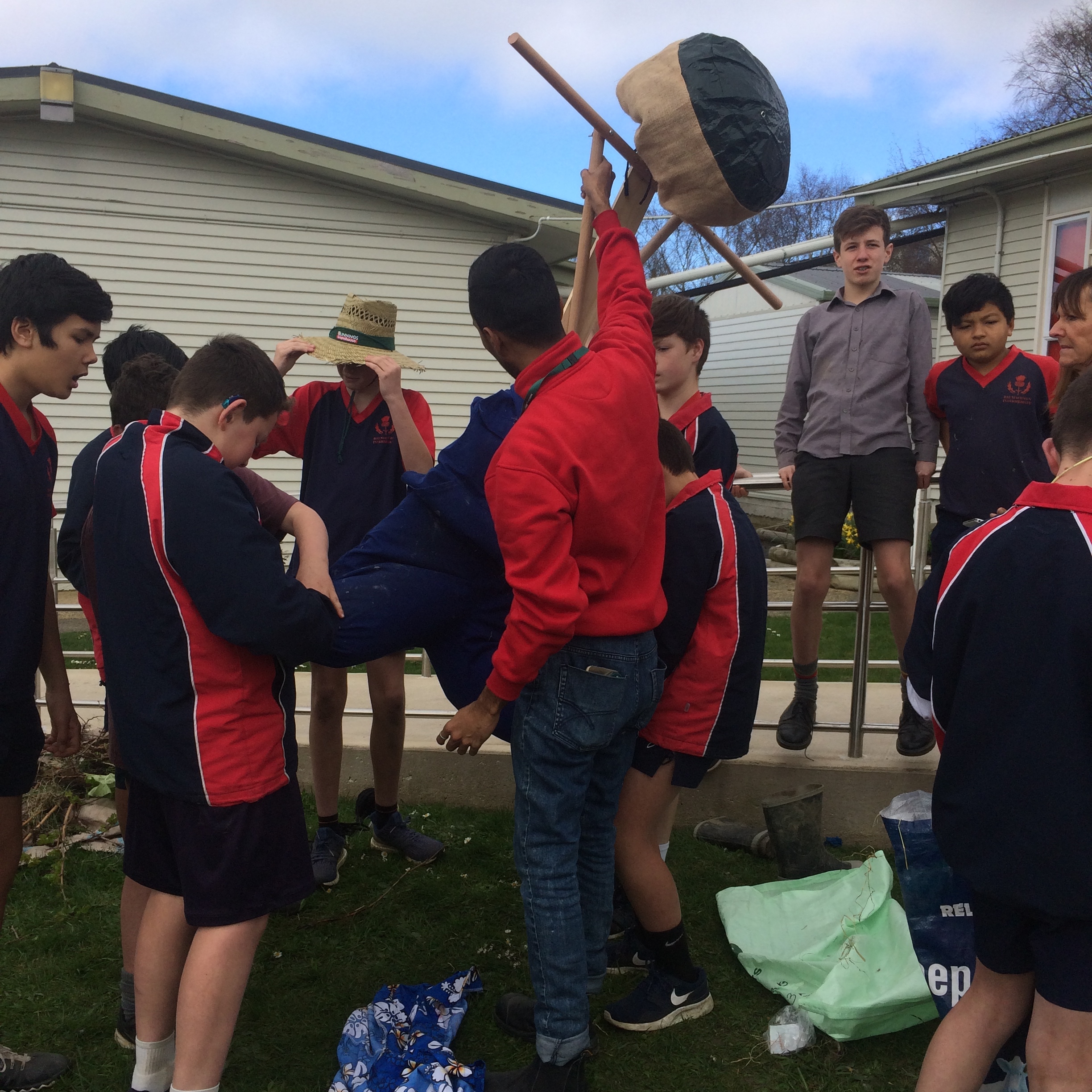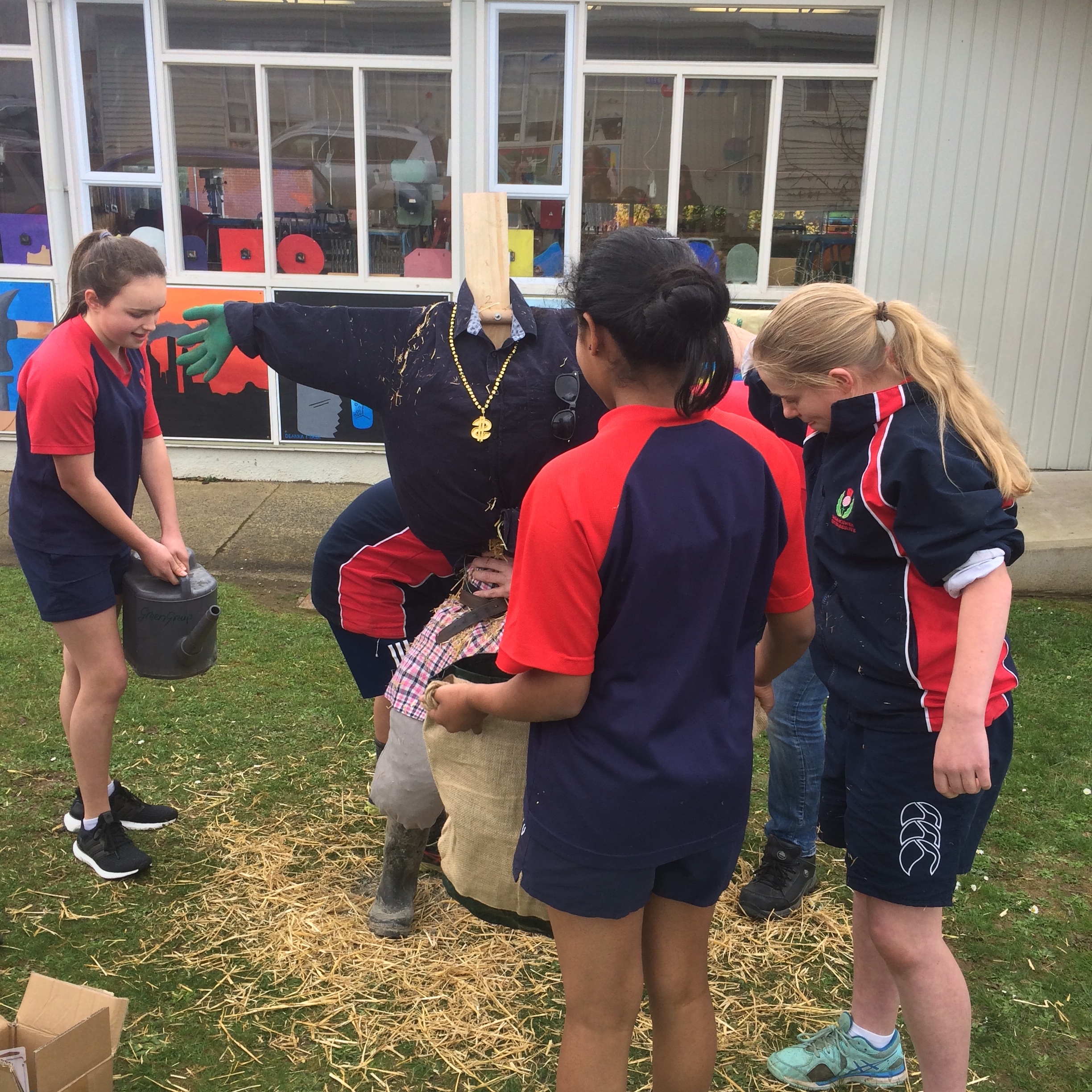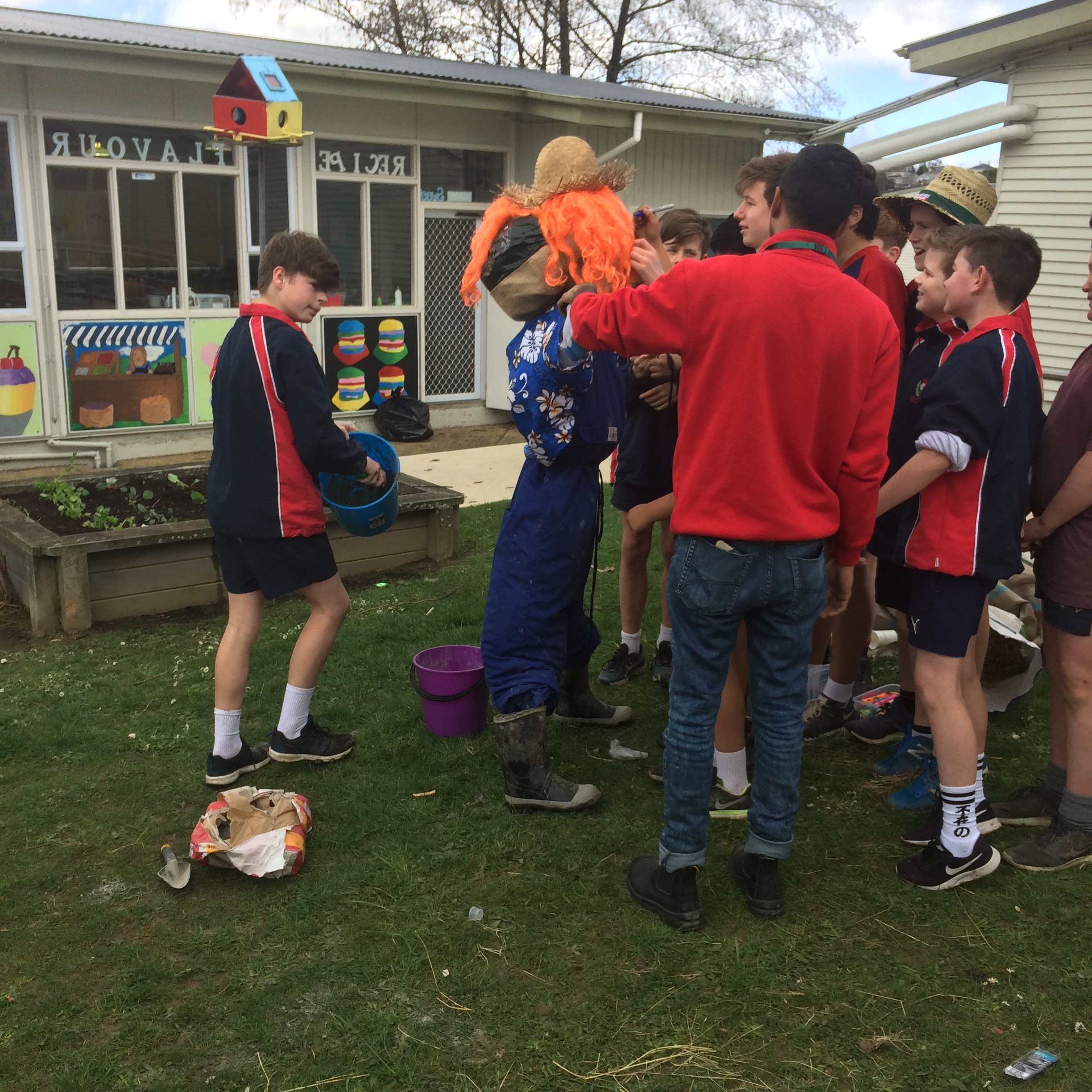 In the second half of the session we split into a girls vs boys challenge working with the Bunnings helpers to make a scarecrow each to use in this garden area to keep the birds away. Both teams had a lot of fun trying to make, create and organise themselves to complete their scarecrow before we then had Mr Hunter come to judge which one he liked the best. Both scarecrows look fantastic but the boys scarecrow was Mr Hunters favourite.