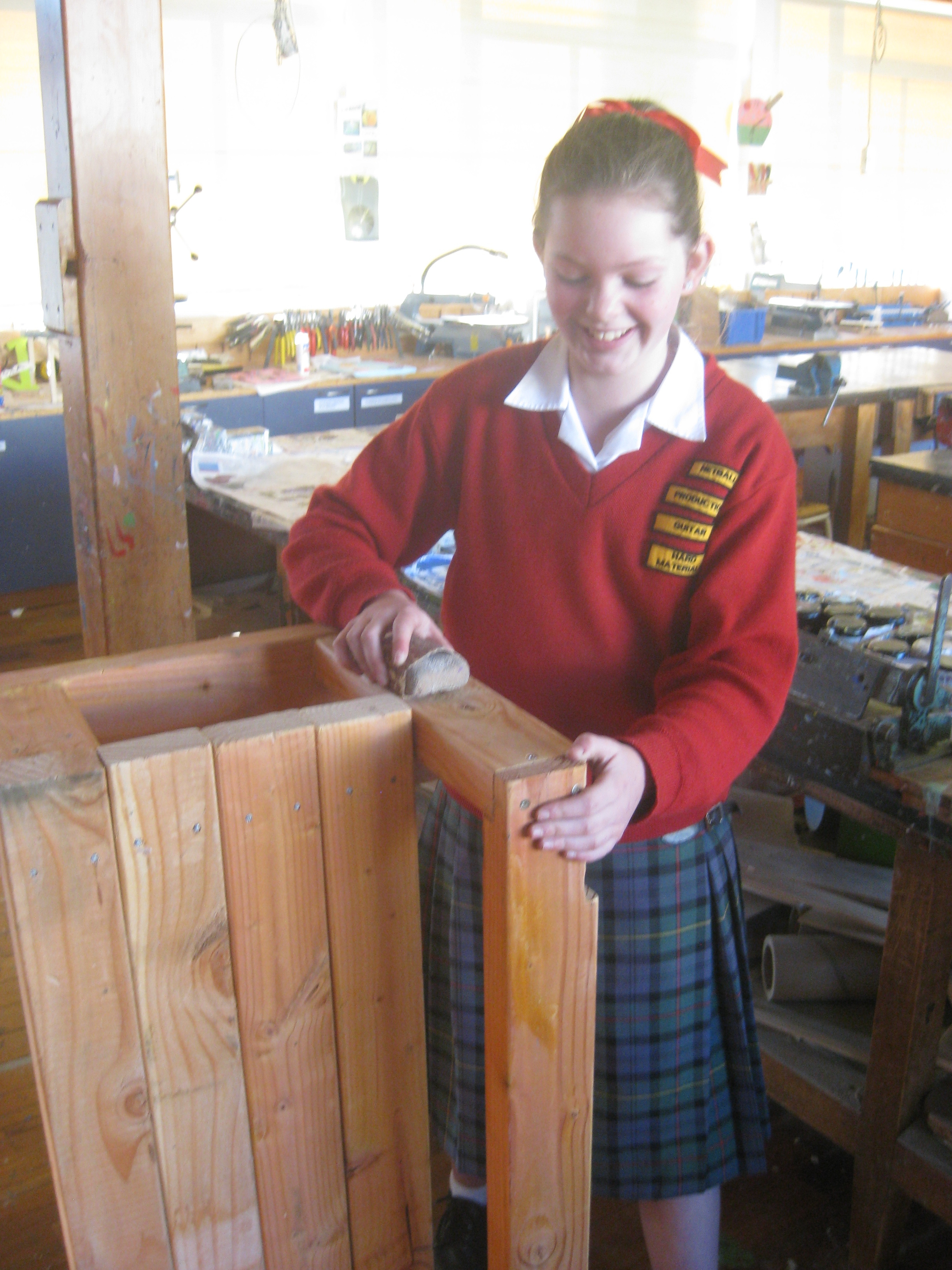 The gifted and talented (G & T) students have almost finished a step to go at the back door of the maths extension room. They are very solid and well made.