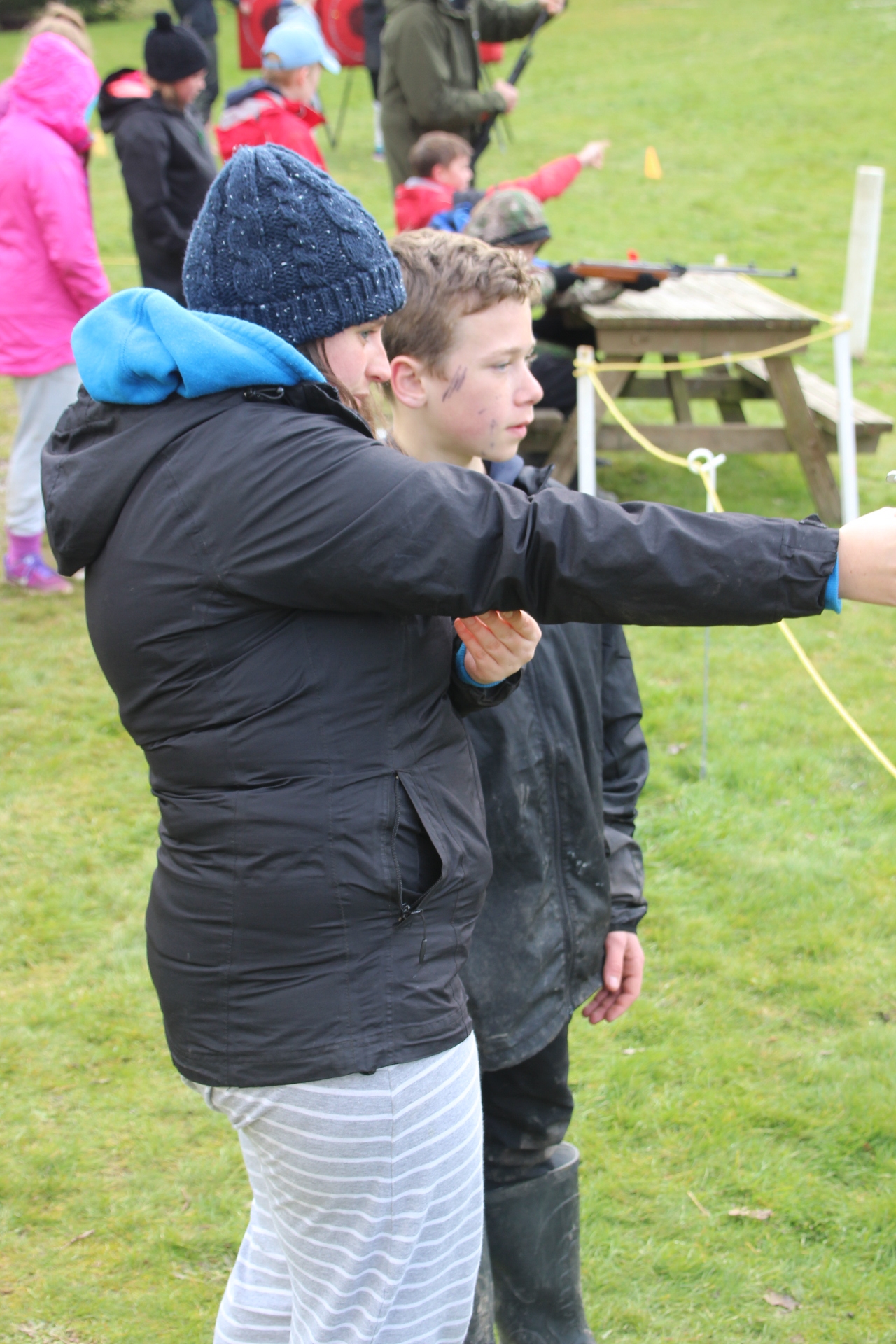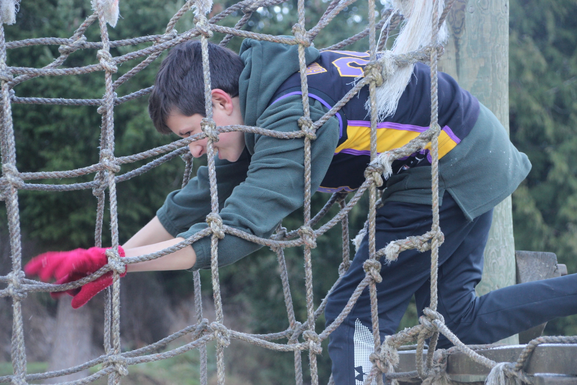 I trembled as I dubiously decided to climb onto the nutcracker, the disgusting smell of mud hovering around. As I scrambled up, people flooded over me like rubbish being dumped, and before and I could do anything, my foot got tangled in the net. I was now coated is freezing mud, and all I could hear was chaotic waves of shouts, yells and screams. Before long, half the class had got to the other side. I fought to free my foot, but there was nothing I could do under the mad rush of the people. It was as if though I was in some kind of gigantic mouse trap. When most of the people had dashed past, I was finally able to free my foot, and dragged myself along to the other side.
