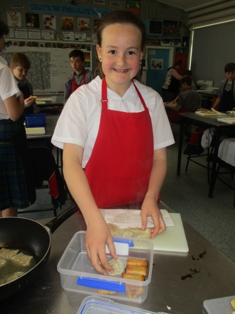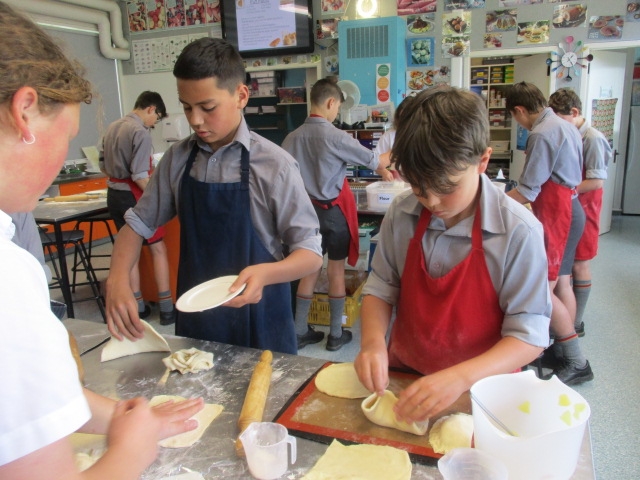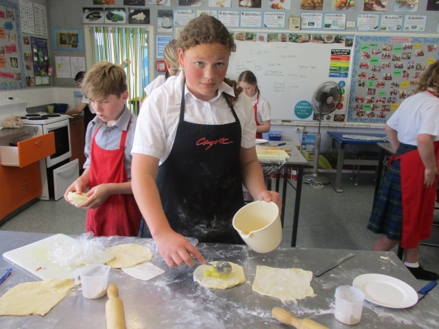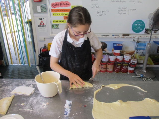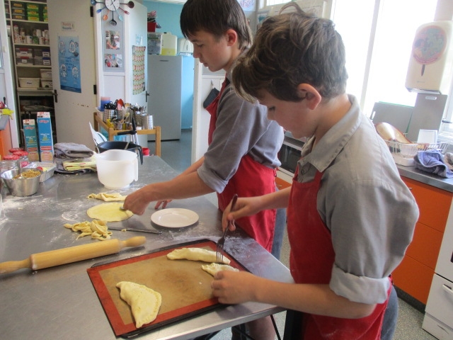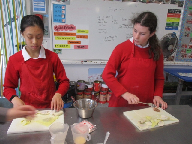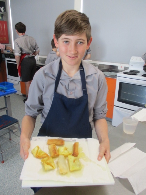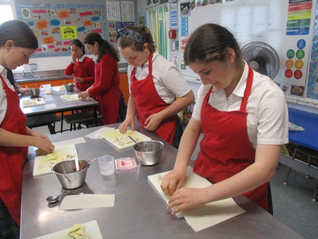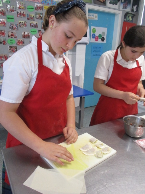 They have started the term with some spaghetti bolognaise and macaroni cheese, We have explored several types of pastry and made dumplings, spring rolls and wontons with bought pastry. We made our own puff pastry into Apple Turnovers and short pastry into little tarts. Now we have to plan and make our own pies.