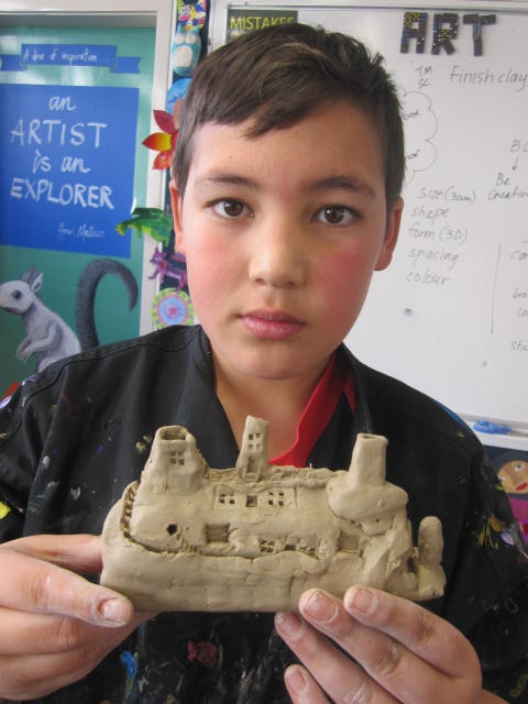 The Year 7 students have been exploring sculpture through using clay. They sculpted either hilltop clay villages or clay faces. The classes that made clay faces then used their face to create a drawing inspired by the art of street artist Os Gemeos. Other classes have started a slot method of 3D. They will paint the base layers and then add drawing and paintings to tell their story.