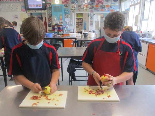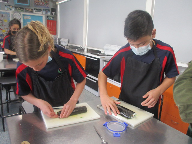 Over the past few weeks the Year 7's have been practicing their cutting techniques with the meat & vegetables for the stir-fry, apples & peaches for the crumble, cauliflower and broccoli for the cheese sauce and the sushi, (and not too many fingers).
